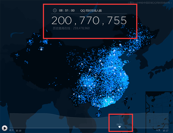 统计说明:由于腾讯QQ在线在刷新或重新打开“腾讯官网”、“动态展示”页面时数据会发生变化,
